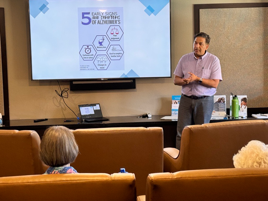 On June 3, 2024, Dr. Hemant K. Pandey, M.D. delivered an insightful presentation titled “Dementia: Can We Reduce the Risk?” at Clarendale of Chandler in Chandler, Arizona. The session highlighted various strategies to mitigate dementia risk, including lifestyle modifications, advances in therapy and treatment, and the importance of sleep and socialization. Dr. Pandey also discussed cutting-edge research and practical activities such as memory games and cognitive therapy designed to support brain health. Attendees left with a deeper understanding of how to take proactive steps to maintain cognitive health and reduce the risk of dementia.